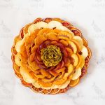 محتویات این باکس شامل گل کیوی و برگه میوه های الو شابلون ، قیسی ، هلو ، خرمالو ، سیب و پرتقال می باشد دیس در داخل باکس مقوایی قرار میگیرد وزن باکس بین 500 تا 600 گرم.